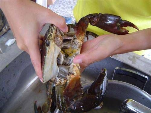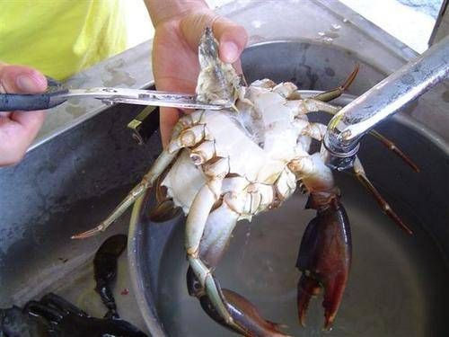 2、洗螃蟹,经过多次试验,牙刷最好用。腋下(脚和壳中间的部分)一定要洗干净。
