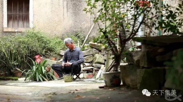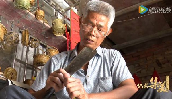 “我叫陈龙标,家住集美区灌口公社井城村。在很小的时候,可能只有十多岁吧,那时候还没有做工,在生产队看秧苗啊,赶鸟,就学了砍竹子,带着小刀到处砍竹子。去角美买的时候,就在那个地方学了两样,看他学编筐,就回来自己学做菜篮子和猪笼之类的,小一点就蓝笼,再小一点就是鸟笼、小碗,再小一点的就是小孩子玩的,现在我最经常做的就是小鸟笼,我个人很喜欢。