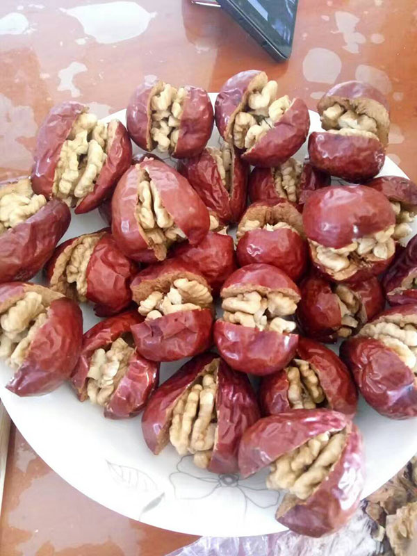 我们推荐的和田枣,来自新疆南部,干旱少雨,光照时间长,昼夜温差大,产出的和田的大红枣,各大、皮薄、核小、肉厚、颜色好、干而不皱,维生素C含量高于苹果的七八十倍,碳水化合物含量比各种蔬菜和其他水果都高,是很好的食补食品。