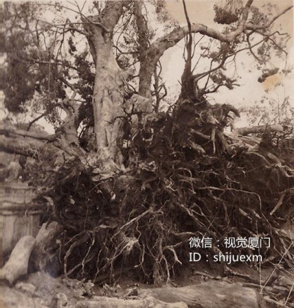 ▲鼓浪屿日光岩寺院前大榕树被台风刮断。