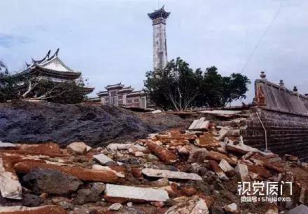 民国厦门地方志则这么记载:民国6年(1917年)9月12日台风狂袭厦门岛,树多被拔起,太古趸船被刮至陆上,小船沉没两千艘,民房毁坏不计其数,厦门城东、北、南城门楼倒塌,近千人丧生。