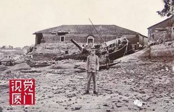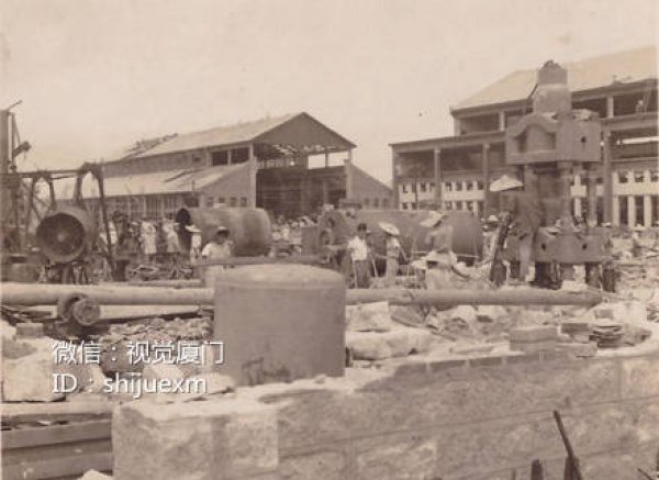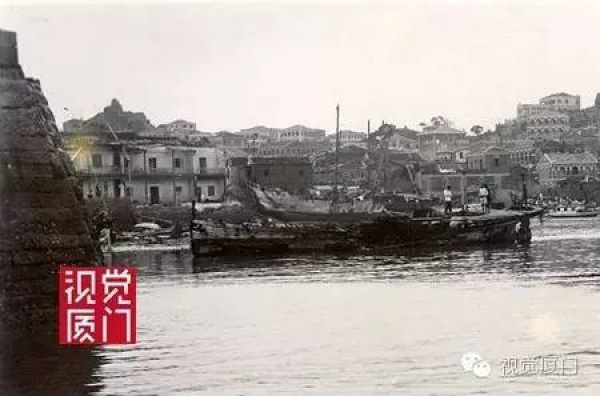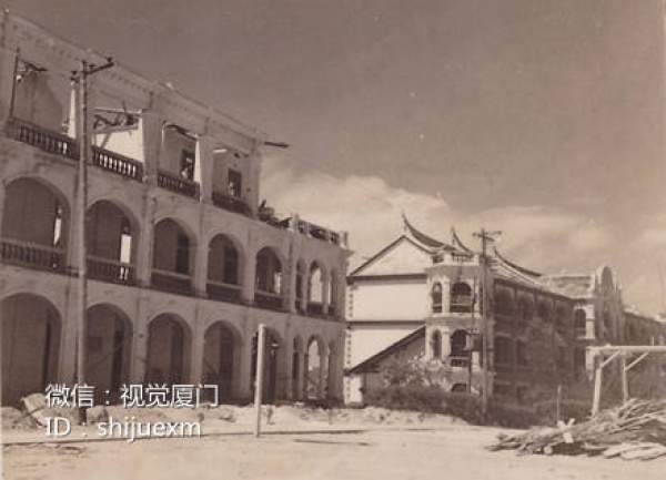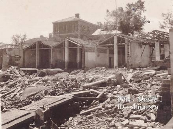 ▲鼓浪屿轮渡码头粮食仓库破坏之情况,远处为英国领事馆。