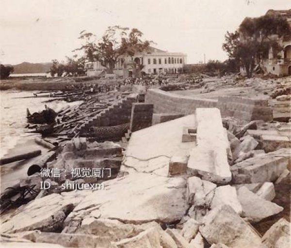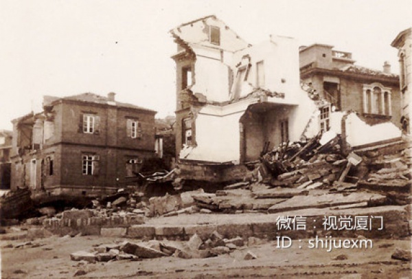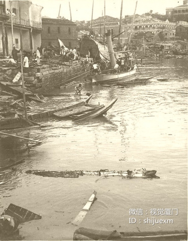▲关于1917年9月12日台风袭击厦门,鼓浪屿黄家渡一带受灾情况,鹭江两岸许多建筑均在这次台风中损毁。