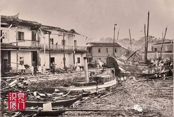 ▲鼓浪屿英国领事馆前的受灾情况,船只在这次台风中损毁两千余艘,其中不乏重吨位的邮轮。(紫日收藏)