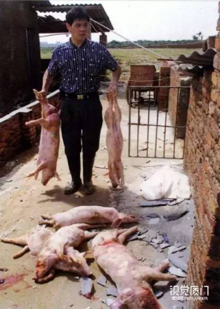 ▲集美鹭盛养殖场800多头仔猪被风吹到的猪舍压死。