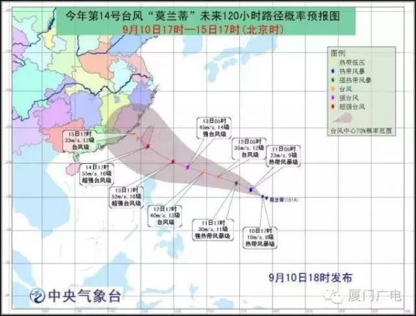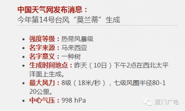 警报!台风“莫兰蒂”或中秋假期扑向福建!最强可达超强台风级...                                                                         第14号台风“莫兰蒂”要来了!