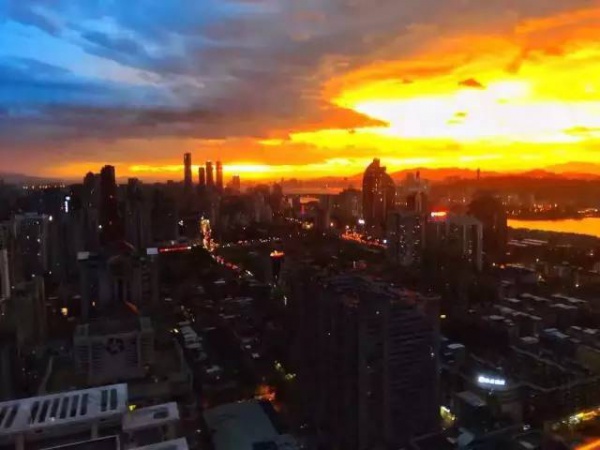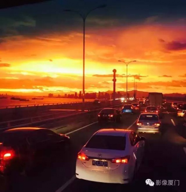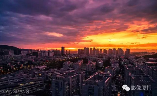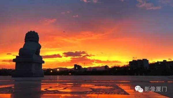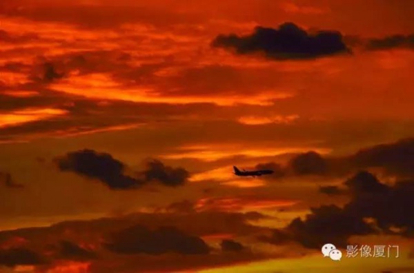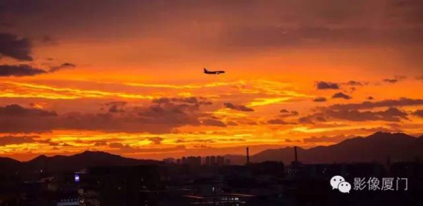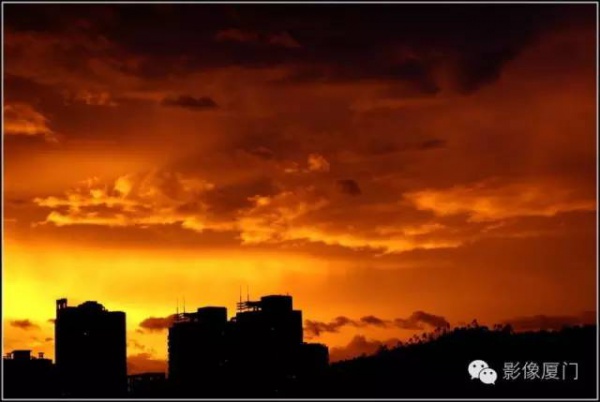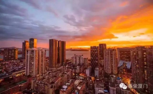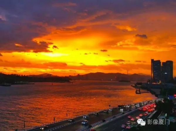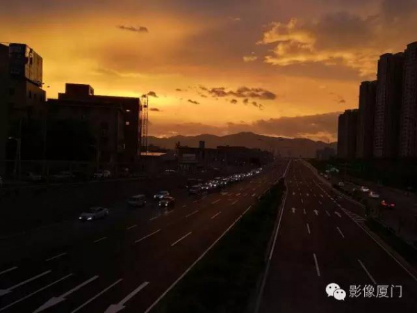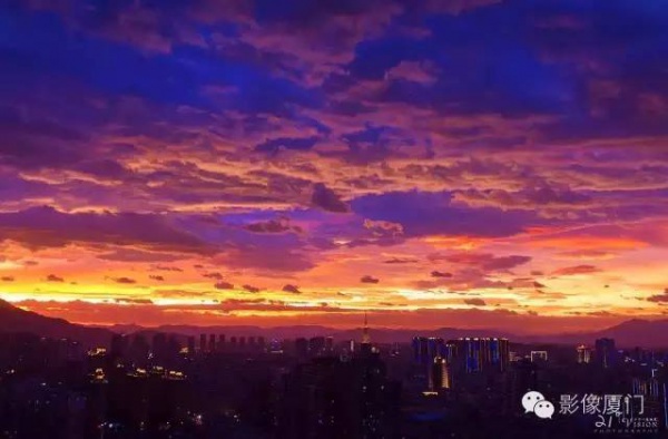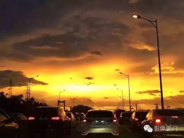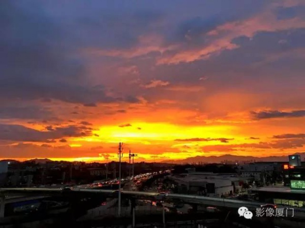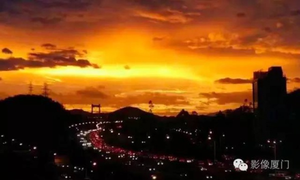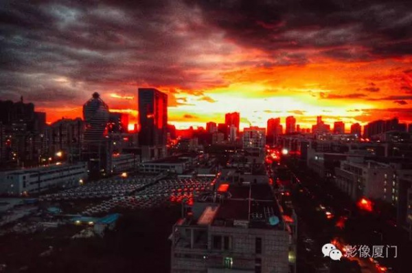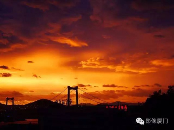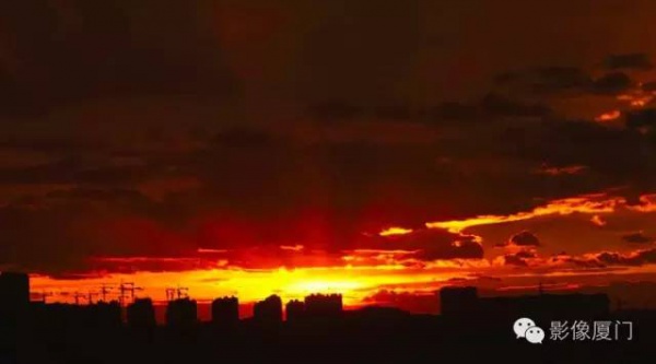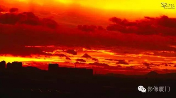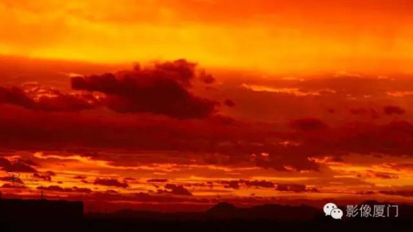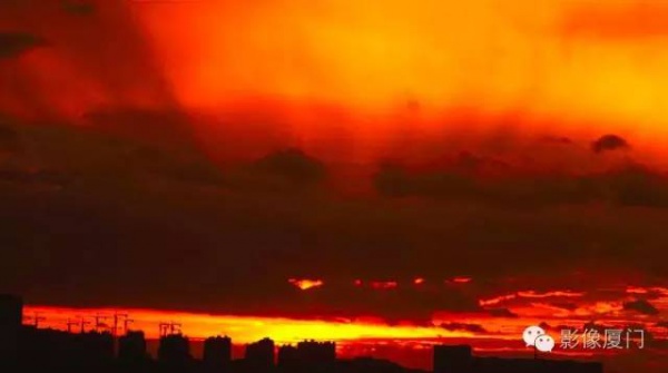 厦门傍晚爆发了史无前例的火烧云