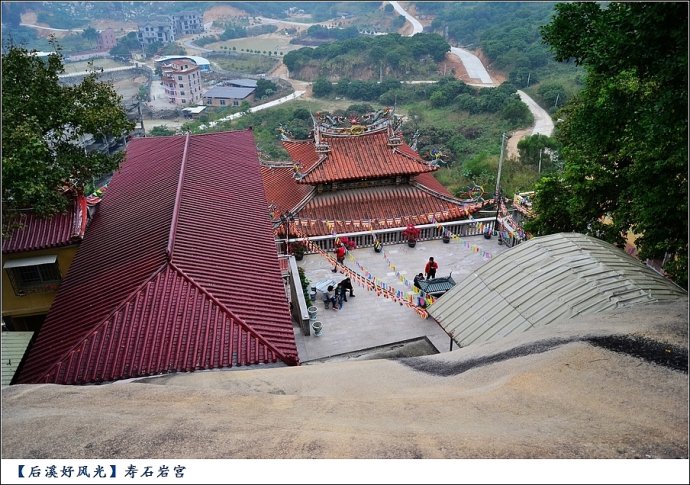 寿石岩宫又称“岩内宫”,位于后溪镇岩内村岩内水库东侧山腰。    宫庙坐东南朝西北,原先利用天然巨石岩洞砌筑而成,高1.5?4米,面宽一间,阔3.85米,进深二间,长7.8米。始建年代不详。清雍正年间(1723?1735)重建,1989年又重拓建宫殿及宫舍,外围砌建2?4米挡土墙。 宫内祀奉观世音。宫殿上方石壁有清宣统己酉年(1909)题刻的“寿石岩”三字摩崖石刻,宫内岩石上还保存2处题刻,其一为“崇祯岁次甲申年(1644)吉日住山僧通谟重建寿石岩记”、“护法徒圆觉圆际”等;其二是“雍正岁次壬子年(1732)蒲月丁卯日实山徒际焕募缘重修”。另宫庙东南侧巨石上有庄玫题刻的“蟠龙山”摩崖石刻1处,北侧10余米处有甘泉洞,其洞壁上镌楷书“夹甘泉”。