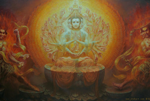 观音菩萨表示大慈大悲,慈是使他人快乐,悲是帮助他人解脱烦恼和痛苦。慈悲一切、怜悯一切、救护一切众生,就是大慈大悲。拜菩萨,就是以菩萨为榜样,长养自己的慈悲心,利益他人,造福社会。因为,害人就是害己,助人就是助己,利人自然有益自己,爱护他人,才是真爱自己。