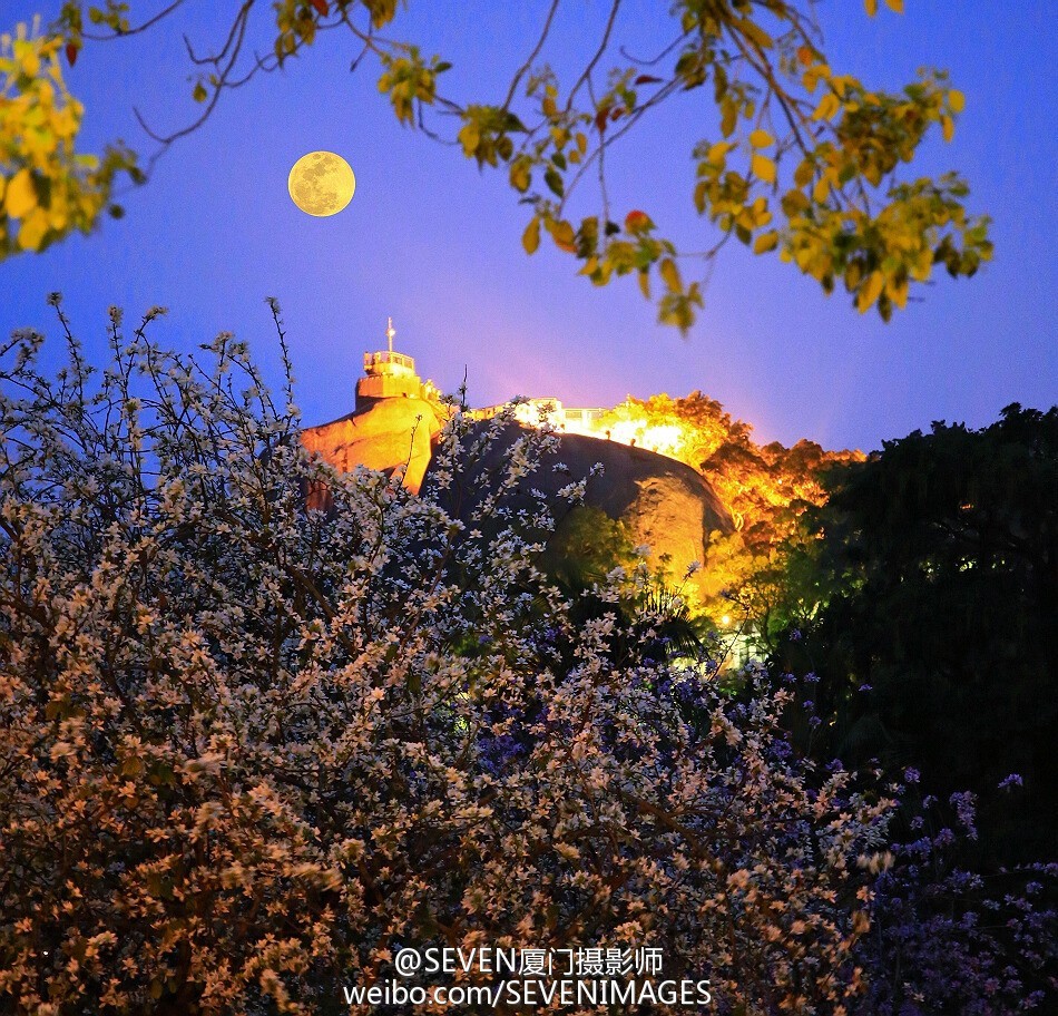 鼓浪屿的美丽,是那宁静的夜晚。在云薄月淡之中依然可清晰见到日光岩的山石、绿树笼罩在一片朦胧下,似薄雾,如轻纱,不经迷失在鼓浪屿的夜色之中。