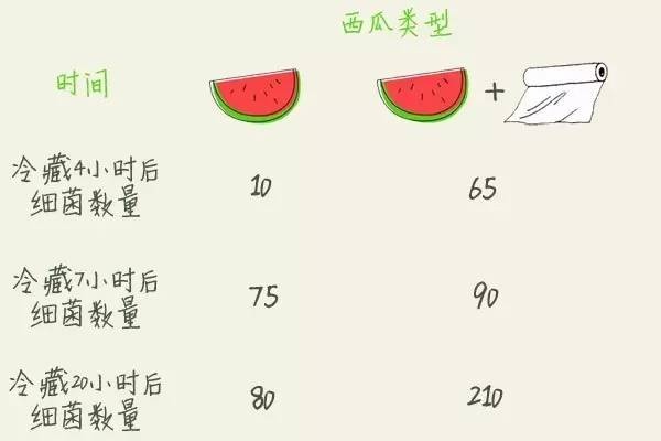 郑州市农委农产品质量检测流通中心做过这样一个实验:检测师先用清水冲洗刀具、菜板和西瓜,然后把西瓜平均分成6份,将其中3份用保鲜膜封盖后放入冰箱保鲜层,另外3份则直接放入冰箱保鲜层(保鲜层的温度为5℃)。