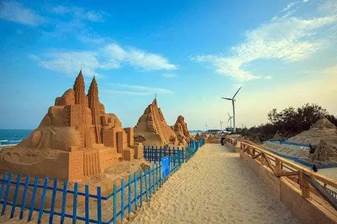 (4)13:00--抵达六鳌翡翠湾,感受最美沙滩的风韵,一起海边踏浪,拍照,互动游戏;或者可以选择自由玩转景区的各项娱乐项目:沙雕、冰雪世界,动物园,沙滩车、动力滑翔翼、水上摩托车等等(娱乐设施费用自理)。