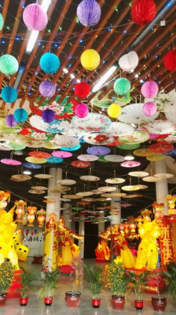 据介绍,展出的手工花灯大部分由梅山寺住持慈明法师画图纸,义工们按图缝制而成,手工祈福灯各式各样,有福慧灯、平安灯、福寿灯、感恩灯等。