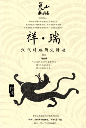讲座将由厦门大学历史学马剑斌博士对汉代祥瑞思想的起源和发展进行简要的论述,以及他对汉代的各类祥瑞图像分类研究:动物、植物、器物、天文地理等几类并逐一排列论述。