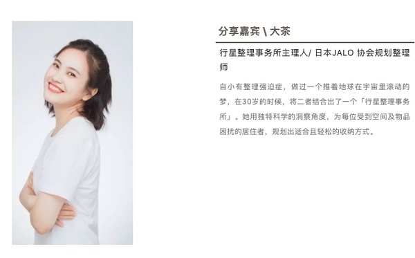 分享嘉宾:大茶 行星整理事务所主理人 | 日本JALO协会认证一级规划整理师