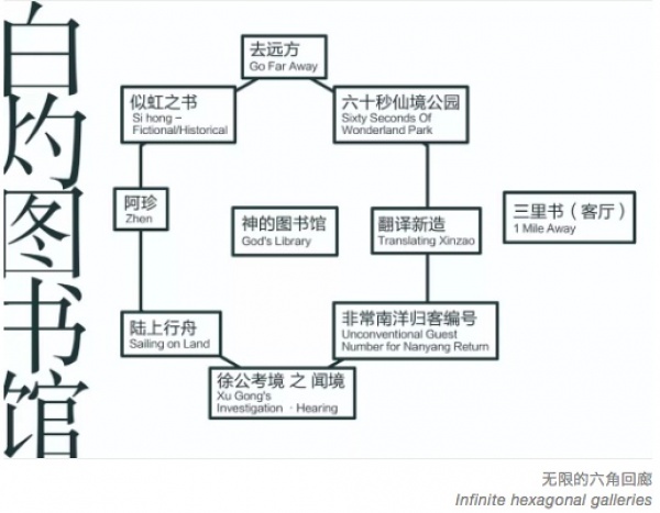 In the library, the curator will return to be a librarian with a feather duster - a ceremonial caretaker . Explore endlessly along the seemingly inelegant hexagonal symmetry, dust off the text and try to "measure" the distance between the author and the resident place:Did he go inside Or is he still outside the door Perhaps the librarian can ask herself this question, and this feeling of "far or close" will be involved in the path of the exhibition. Of course, the distance here is not the physical distance in the objective sense, nor does it have the ranking of good or bad.