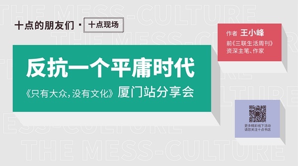 【标题:反抗一个平庸时代——王小峰《只有大众,没有文化》·厦门分享会