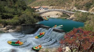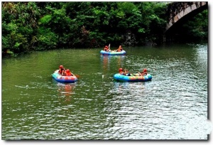 犀溪漂流,又称杨梅州生态文化漂流,漂流全程约5公里,时长约2个小时,双人皮筏艇模式。起点始于横石服务区,终点到达福寿桥终点码头停车场。