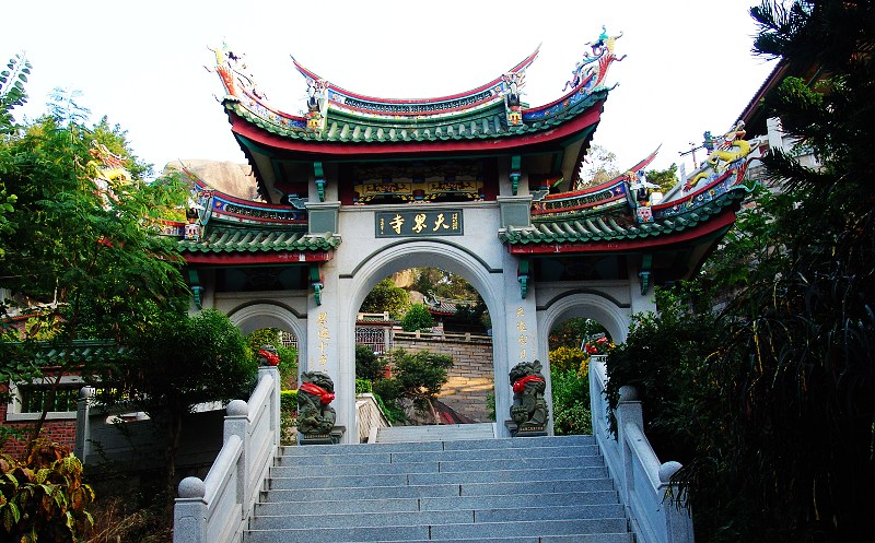 厦门天界寺在万石山风景区的岩西侧的醉仙岩(这样说是因为古人说它山势犹如仙人醉卧,所以称之为“醉仙岩”。顶峰的大岩石,很像一只蹲着的骆驼,被称为“骆驼峰”),有一座清初月松和尚募化兴建的天界寺。昔日寺僧清晨间撞钟108下,声闻遐迩,因而有 “天界晓钟”之称,为 厦门小八景之一。寺前有一巨石掩覆成洞名“醴泉洞”。洞中有口井,被称为“仙井”。沿寺后拾级而上,有“问仙路”、“仙迹石”、“石棋局”、“灶浴盆”等景。顶峰巨石,刻“天界”二 字。临近山上绝顶又有一石洞,名“ 长啸洞”,洞壁有明万历年间平倭将领施德政等人的唱和诗。
