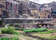 走进这一片全是石头垒砌而成的房屋群里,历史的厚重感充盈在空气中。墙上的石卵石块,都是铁红色的风化石。砌屋时依山就势,上下左右都不讲究布局。许多人家,同一座房子里从这个房间到那个房间,还得上几级石阶。户与户之间,都有石卵台阶相连。一般房子都用石砌到顶,也有上面部分垒土坯的。这些房屋都有一个共同点,就是窗户少而小,据说是从防盗方面考虑的。同一座房子里,却一定要在前房后房之间留一道哪怕只是窄窄的露天巷道或小天井,为的是有利于通风和采光。