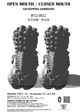 The Chinese European Art Center presents the first solo show of Giuseppina Giordano, a young Italian artist, which in the three months of residence in Xiamen has realized three new works that reflect upon the concept of a “non identical double”, where the double is not the duplication of the same, but the meeting with the other, and that have as a common field of inspiration the “complementary” principle. In Giuseppina Giordano's new works the symbols and meanings of both Western and Eastern cultures finds a new structure, a new broad and auspicious perspective.