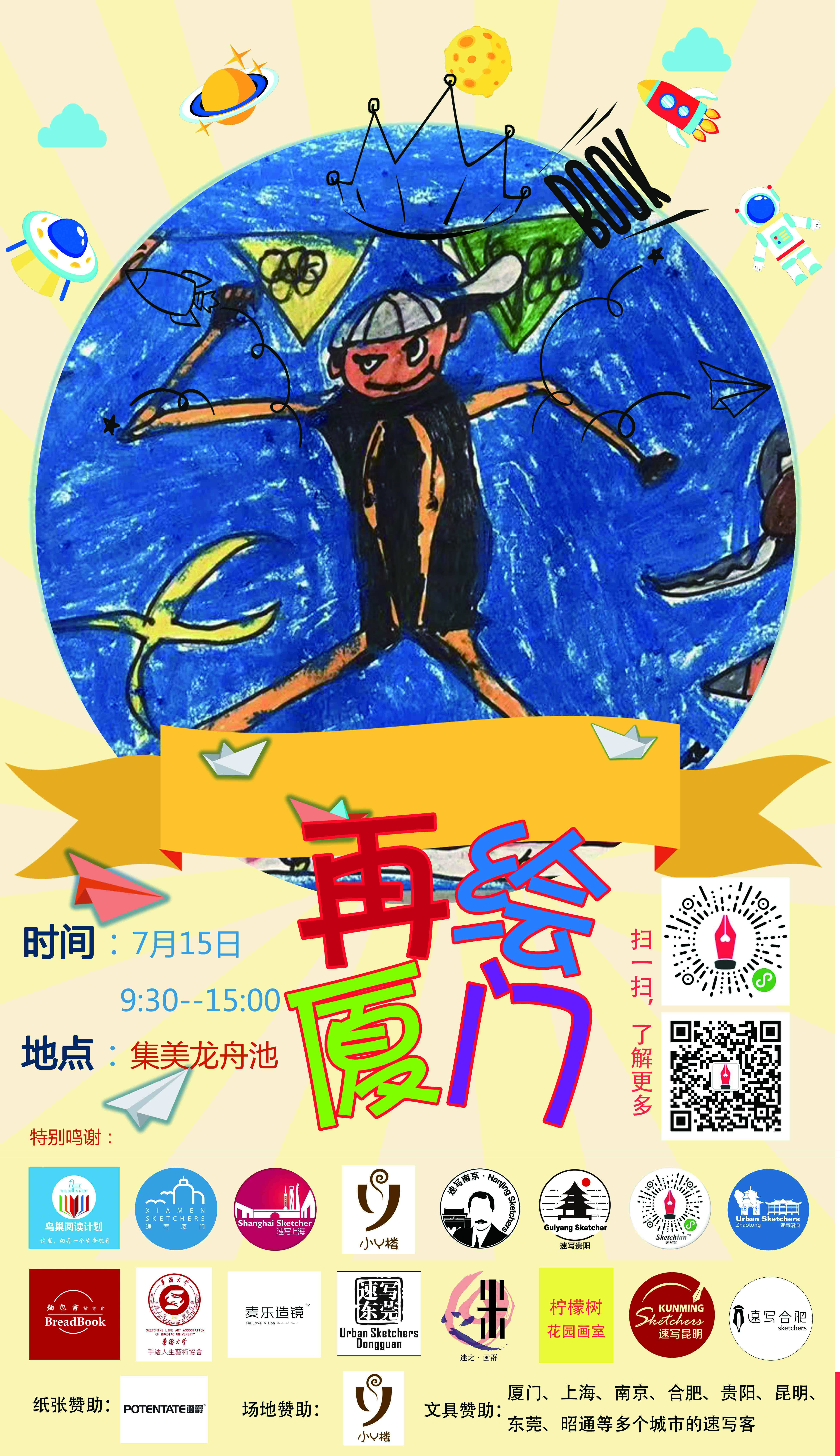 此次“再绘,厦门!再会!”是全国性系列公益项目“城市,我爱你,再见”一个分项目,由鸟巢阅读计划发起,速写厦门策划执行、面包书公益等公益组织负责活动细节。活动于当日上午10时开始,数十名即将返乡的孩子在工作人员的带领下,以厦门著名的集美学村龙舟池为活动地点开始写生。