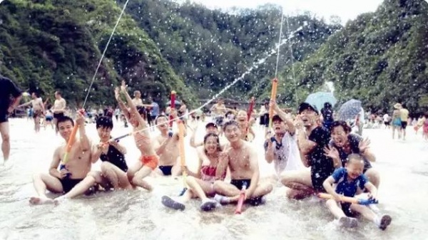 在这边,领队将会组织各项互动,水上拔河,水枪混战,水上足球,水上撕名牌。。。