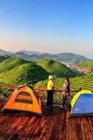 10:30 以茶之趣、茶之味、茶之韵为主题的【茶天下景区】游览景区,景区总的有4个观景平台-观日台、茶壶台,赚大钱、好汉坡,每个观景台下面整齐有序地种着茶树,满山遍野的清新翠绿,令人心旷神怡。在这里,客人可以选择想要登上去的观景平台,每个观景台都有不一样的风景。登上观日台,上面有一大片的木栈道,在上面,眺望远方,层峦叠嶂,尽收眼底。来到茶壶观景台,映入眼帘的是一个巨大的茶壶大雕塑,切合了景区的主题,大家可以跟茶壶合个影,留作纪念。还可以观赏的是这个“赚大钱”观景平台,为什么要叫赚大钱呢?是因为在这个观景平台上面放着一枚大铜钱,寓意着来到这个景区的游客朋友们都可赚大钱!最后一个介绍的是整个景区海拔最高的观景平台-“好汉坡”,之所以叫好汉坡是因为这个观景台海拔1108米,爬山去的栈道也是最陡的。但是“吃得苦中苦,观得景中景”在这里你可以看到其他三个平台看不到的美景,感受到“一览众山小”的豪迈气势。