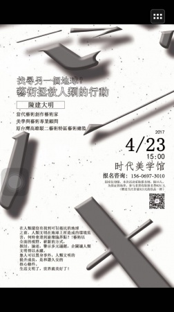 活动主题:“陈建大明分享会-找寻另一个地球?艺术拯救人类的行动”