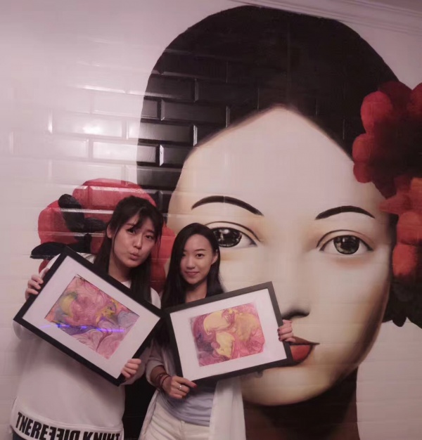 因为颜料本身是不溶于水,所以等于是用颜料在水上作画,等到水面上的图画完成后,