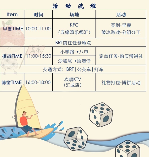 【活动流程】早餐破冰-分组活动(完成定点任务,累积礼物基金,采购博饼礼)-博