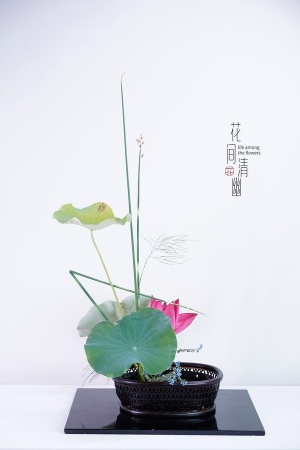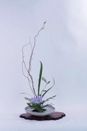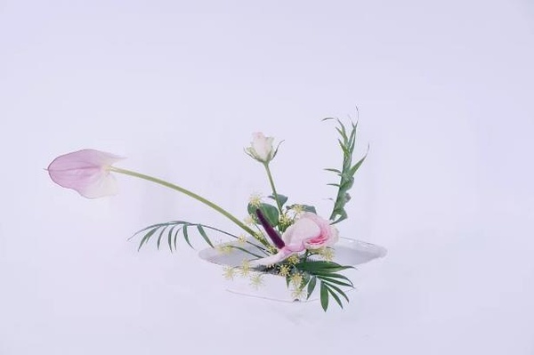 它包含了小原流入门花型——花意匠中基本型的四个花型,也开始学习认识植物特性,学习花卉的组合及平衡方式。