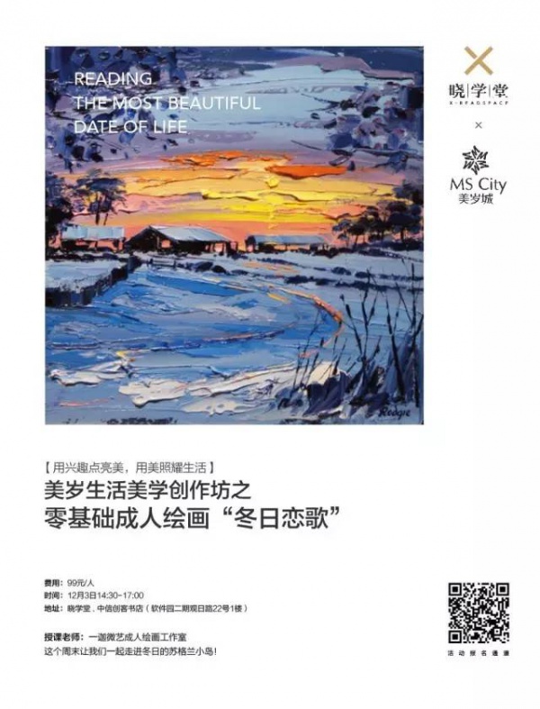 跟随艺术家Lynn Rodgie ,一起走进冬日的苏格兰小岛。本次活动将采用刮刀与画笔结合的绘画方式,使用画刀作画的灵感最早源于威尼斯画派大师提香,刮刀能创造出画笔达不到的效果。