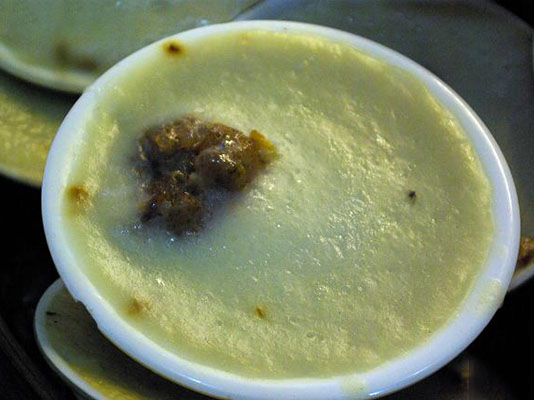 油葱馃是厦门的小吃,在家做着工序相当繁杂,厦门的“馃”就是一种米做的食物。将大米磨成米浆状然后蒸熟即可,如果蒸成了一张大的薄饼之后,然后切成手指宽的条状,就叫做馃条,和出名的陕西秦镇米皮类似。如果把米浆放在一个个碗里蒸熟,就叫做碗馃