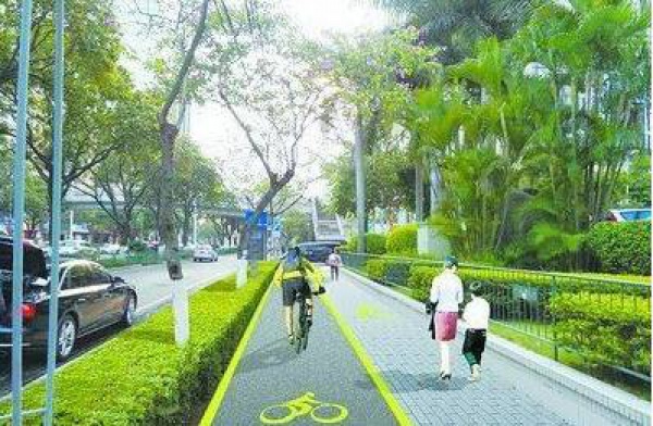 位于云顶路的这条自行车专用道示范段,将沿着BRT高架桥建设。