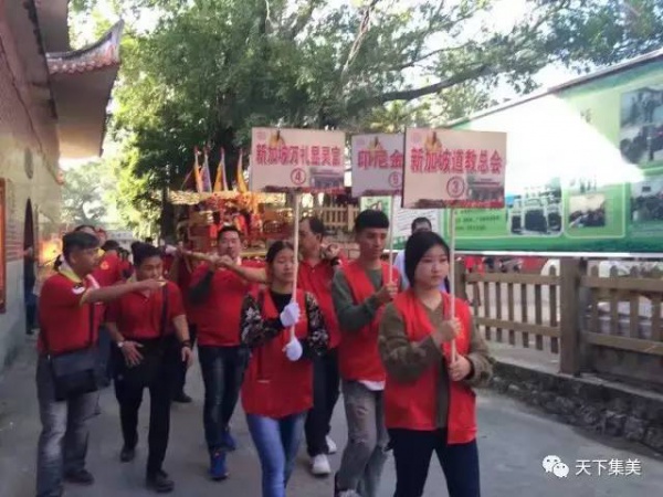 文化节期间,城隍庙广场随处可见“红马甲”的身影。村里的年轻人、老年人纷纷参与其中,担任活动的义工,现场还有数十名来自兴才学院的志愿者,他们也穿着红马甲,耐心地为游客提供引导等服务,喜庆文明两不误。