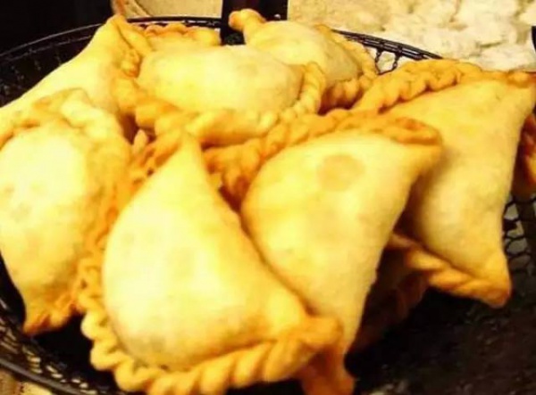 炸扣(炸酥角)长得像金元宝,里面包满了芝麻和花生。