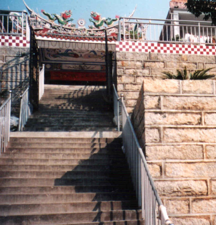红日偏西了,我缓缓地下了台阶,再次回头仰望一下那在高高台阶顶上的小庙宇。