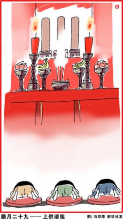 腊月二十九(1月26日),上坟请祖上大供。对于祖先的崇拜,在我国由来已久。
