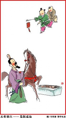 大年初六(2月2日),马到成功。沥酒拜街中。万户千门看,无人不送穷。