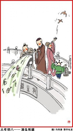 大年初八(2月4日),放生祈福。众星下界之日,制小灯燃而祭之,一寸光阴一寸金。