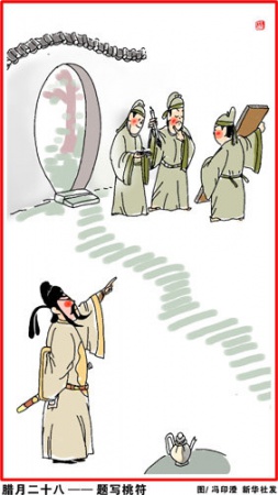 腊月二十八(1月25日),打糕蒸馍贴花。古人以桃木为辟邪之木,后被红纸代替。