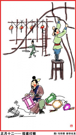 正月十二(2月8日),搭建灯棚。元宵节将近,开始做元宵赏灯的准备工作。