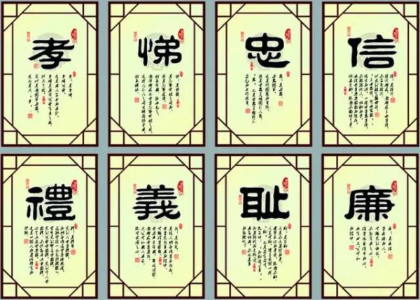 这八件事是:孝、悌、忠、信、礼、义、廉、耻。这是古人的八条做人基本道德准则,违犯了任何一条,都是对不起祖宗,都无脸面对家人。
