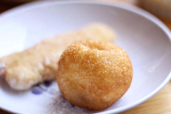 用糯米包入内馅,油锅一热,一颗颗可爱粉团滚进油锅里。看着它们热锅里翻滚,内心也不禁雀跃期待起来。