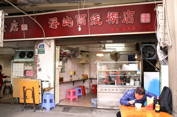浮屿家的面线看似平平,却是接近厦门古早味的面线糊味道。大肠、猪血、瘦肉再配上一根油条,浓浓的小时候味道瞬间回到嘴边,大肠血是这里的镇店之宝,很多食客常会慕名而来,就是为了吃他们家的猪血。
