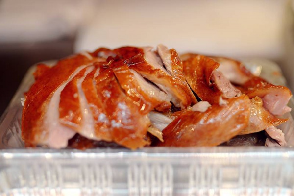 烤鸭属于那种一看见就能引起食欲的食物,带着油渍的烤得金黄的身材玲珑的鸭子,摆在那里好像不吃都对不起它,但是很多一吃就对不起刚刚的食欲。
