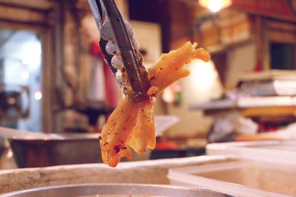 无骨鸭掌一斤40元,筋多皮厚,不仅有嚼劲,而且含有汤汁,入味微辣鲜香,但是一点都不油腻。