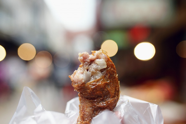 里面包裹着成块成块的瘦肉,一点肥肉都没有,但是吃起来不会塞牙,反而弹性十足,配合上清脆的洋葱、马蹄,味道也很赞,3元一个。