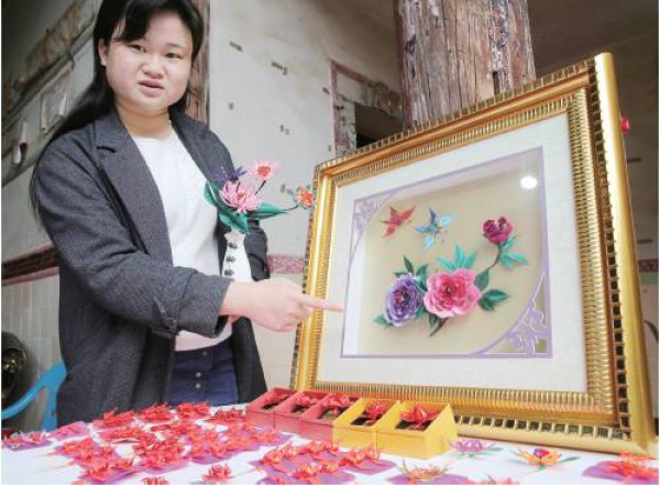 为了提升春仔花的价值,洪晓瑜空闲时期,也在思考如何让春仔花变换花样。她尝试着将制作春仔花的技术用在挂画的制作上,利用几个月的时间成功做出了一幅全部由春仔花组成的画,看上去十分漂亮且新颖。“平时有朋友或客户来的时候,我都会把这幅画拿出来给他们看,大多数的人都很喜欢,但想要将这样的创新画作当成商品出售,我有点舍不得,也不知道该如何定价。”洪晓瑜说,一幅画的制作需要耗费几个月的时间,但由于春仔花的成本低廉,大家对于画的价值又会出现偏差。“对我来说,卖高了,大家不认可,卖低了,又对不起我花费的时间。”洪晓瑜说,自己还在继续寻找合适的方法,让春仔花能够成为民间流行的饰品。